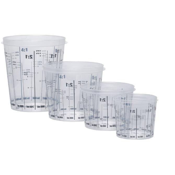 Одноразовые прозрачные мерные стаканчики 700 мл со шкалой для точного разбавления и смешивания лакокрасочной продукции. Pабочий объем 600 мл